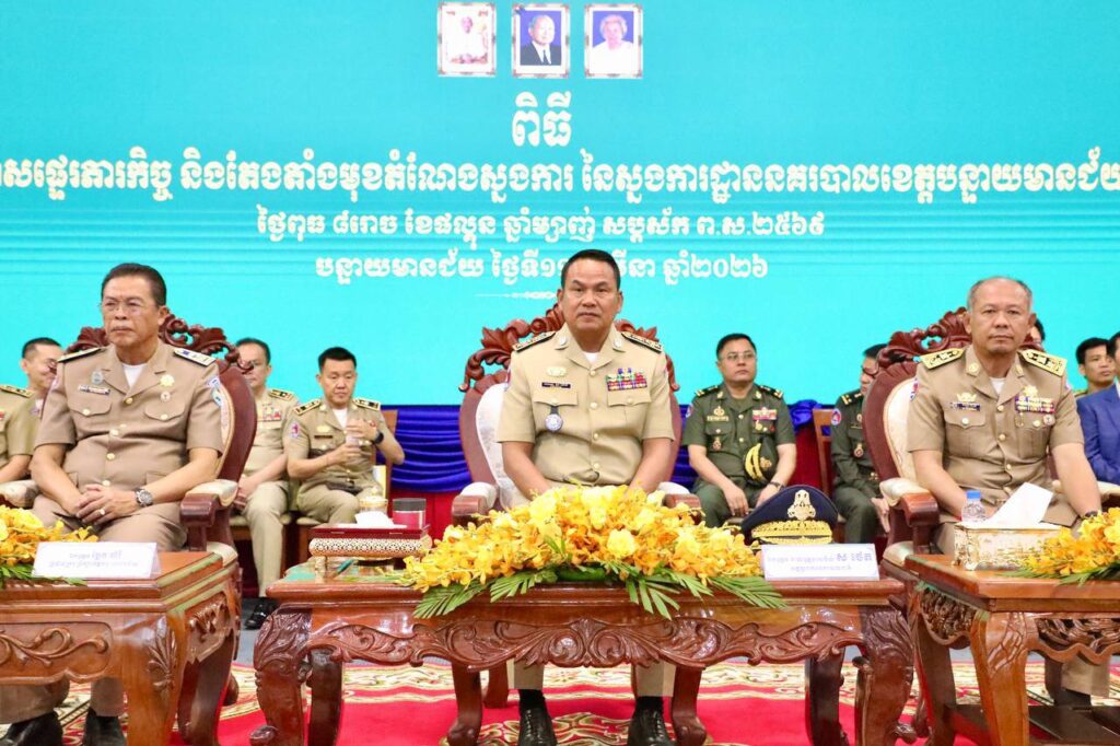 ការណែនាំរបស់ ឯកឧត្តម នាយឧត្តមសេនីយ៍ ស ថេត អគ្គស្នងការនគរបាលជាតិ ធ្វើឡើងនៅព្រឹកថ្ងៃទី១១ ខែមីនា ឆ្នាំ២០២៦នេះ ក្នុងឱកាសអញ្ជើញជាតំណាងដ៏ខ្ពង់ខ្ពស់ ឯកឧត្តមអភិសន្ដិបណ្ឌិត ស សុខា ឧបនាយករដ្ឋមន្ដ្រី រដ្ឋមន្ដ្រីក្រសួងមហាផ្ទៃ ក្នុងពិធីប្រកាសផ្ទេរភារកិច្ច និងតែងតាំងមុខតំណែងស្នងការ នៃស្នងការដ្ឋាននគរបាលខេត្តបន្ទាយមានជ័យ នៅសាលាខេត្តបន្ទាយមានជ័យ។