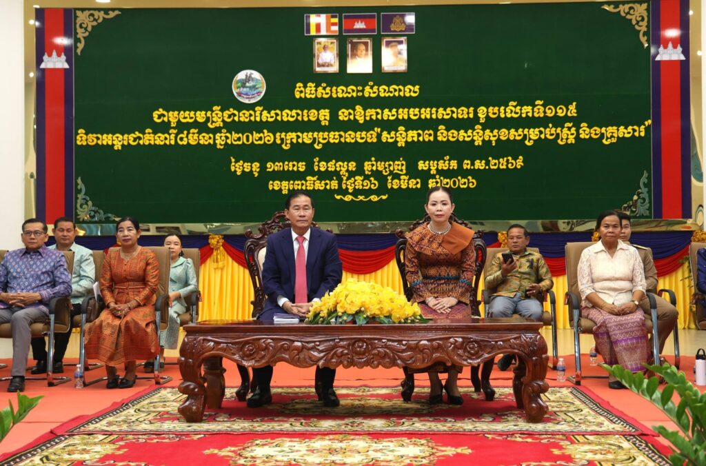 ពោធិ៍សាត់៖ ឯកឧត្តម ខូយ រីដា អភិបាល នៃគណៈអភិបាលខេត្តពោធិ៍សាត់ និងលោកជំទាវ អាំង សុជាតា ខូយរីដា ប្រធានកិត្តិយស សាខាសមាគមនារីកម្ពុជា ដើម្បីសន្តិភាព និងអភិវឌ្ឍន៍ ខេត្តពោធិ៍សាត់ នារសៀលថ្ងៃទី១៦ ខែមីនា ឆ្នាំ២០២៦នេះ បានអញ្ជើញជាគណៈអធិបតី ក្នុងពិធីជួបសំណេះសំណាលជាមួយមន្ត្រីជានារីសាលាខេត្ត នាឱកាសអបអរសាទរខួបលើកទី១១៥ ទិវាអន្តរជាតិនារី ៨មីនា ឆ្នាំ២០២៦ ក្រោមប្រធានបទ «សន្តិភាព និងសន្តិសុខសម្រាប់ស្ត្រី និងគ្រួសារ» នៅសាលប្រជុំទេពឧកញ៉ាឃ្លាំងមឿង (សាលប្រជុំធំថ្មីសាលាខេត្ត)៕