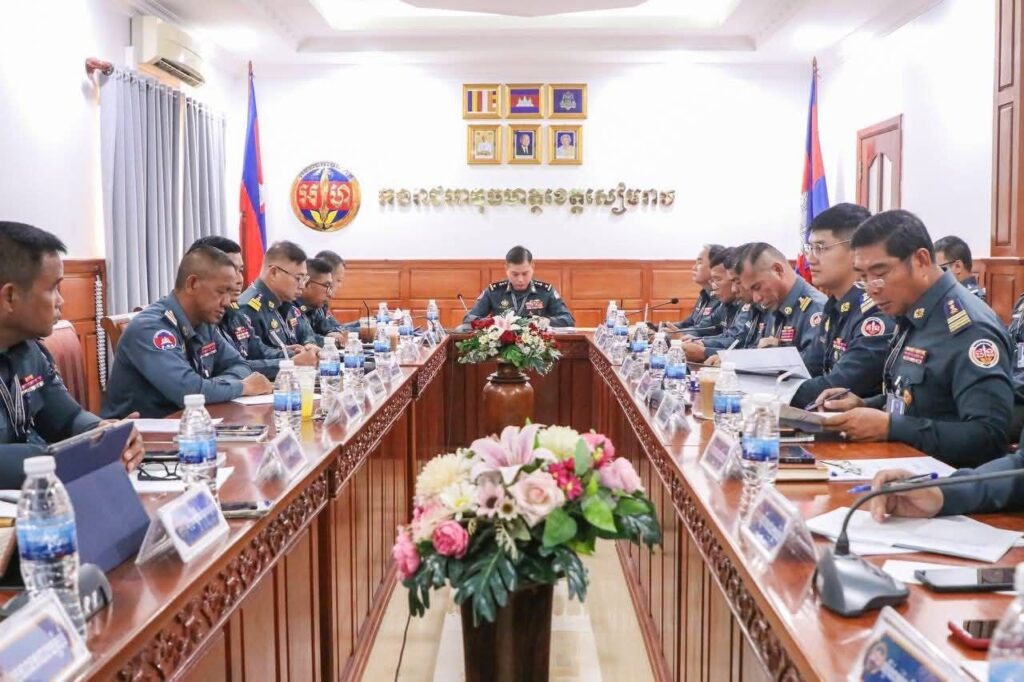 (ខេត្តសៀមរាប)៖ លោកឧត្តមសេនីយ៍ត្រី សៀ ទីន មេបញ្ជាការ កងរាជអាវុធហត្ថខេត្តសៀមរាប នាព្រឹកថ្ងៃទី២៧ ខែមីនា ឆ្នាំ២០២៦ អញ្ជើញជាអធិបតី ក្នុងកិច្ចប្រជុំត្រួតពិនិត្យការអនុវត្តន៍តួនាទី ភារកិច្ច និងវឌ្ឍនភាពការងារ កងរាជអាវុធហត្ថខេត្តសៀមរាប ត្រីមាសទី១ និងលើកទិសដៅសកម្មភាពការងារត្រីមាសទី២ ឆ្នាំ២០២៦ ដែលមានការចូលរួមពីលោកមេបញ្ជាការរង ជានាយសេនាធិការ លោកមេបញ្ជាការរង ទទួលការងារជំនាញ លោក លោកស្រី នាយសេនាធិការរង ប្រធានមន្ទីរ ប្រធានអង្គភាព លោក លោកស្រីនាយការិយាល័យ មេបញ្ជាការ កងអនុសេនាធំចល័ត មេបញ្ជាការមូលដ្ឋានកងរាជអាវុធហត្ថក្រុង ស្រុក និងនាយអាវុធហត្ថដែលមានការពាក់ព័ន្ធជាច្រើនរូប។